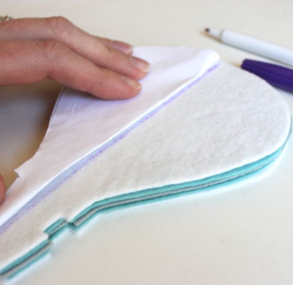 Logo após, dobre o molde ao meio, posicione-o sobre a pilha de balões e risque o meio.