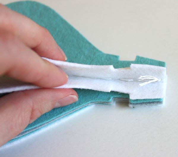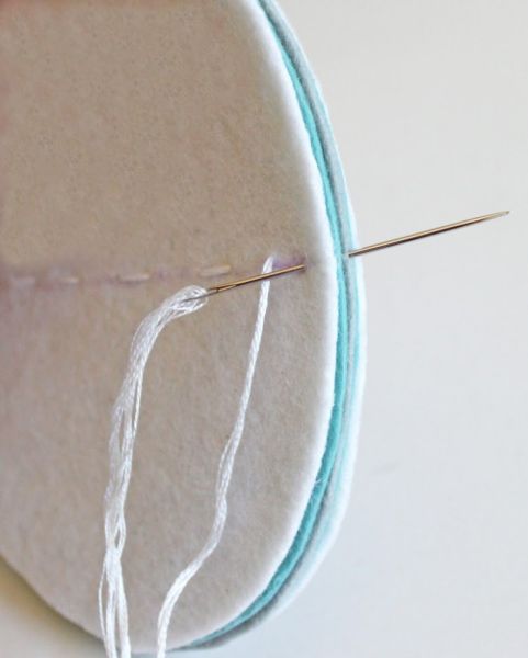 Em seguida, pegue as duas partes soltas ao lado da parte colada e passe a agulha com linha.