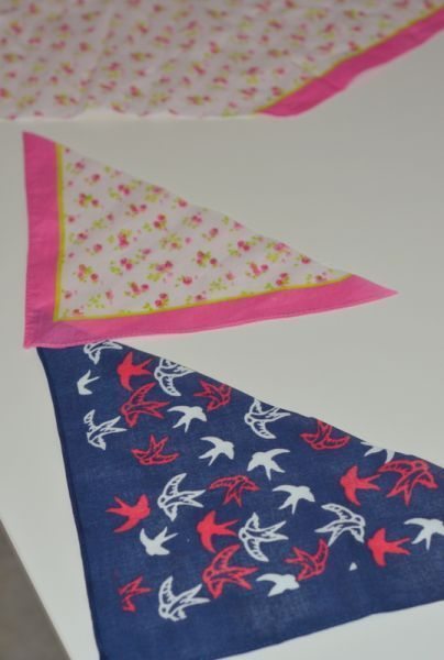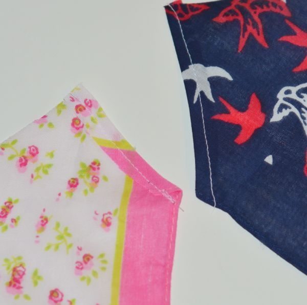Comece cortando uma das pontas do lenço escolhido ou cortando um retângulo em um tecido e fazendo a barra nas duas laterais do triângulo.