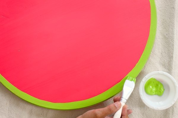 Logo após, pinte a borda do seu círculo de madeira com a tinta com a cor verde.