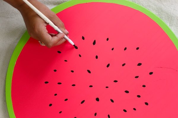 Agora, faça as sementes de sua melancia com a tinta com a cor preta.