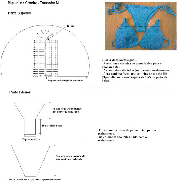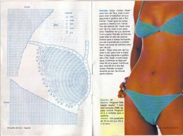 Se você não gosta ou, não sabe seguir gráfico de crochê, siga a receita deste modelo de biquíni, para não ficar de fora desta onda.