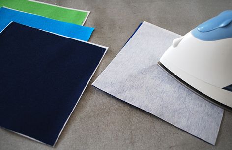 Comece cortando seis quadrados de tecido com o tamanho de sua preferência. Depois aplique a entretela em cada quadrado, pelo lado do avesso, e com o auxílio do ferro de passar roupas.