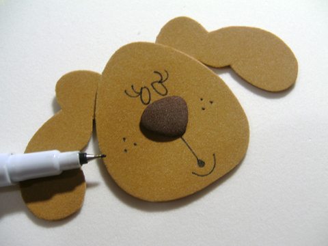 Logo após, cole o focinho e orelhas na cabeça da cachorrinha.