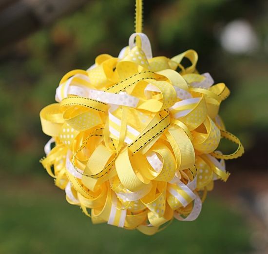Para a decoração de sua festa ficar ainda mais especial, você pode fazer uma bola decorada com fitas, com a cor ou com as cores que predominam no tema da festinha.