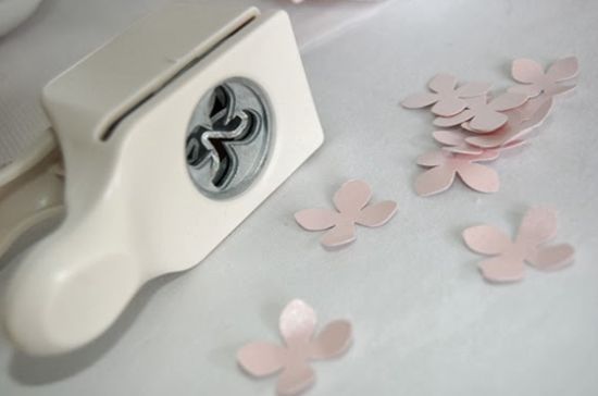 Comece cortando muitas flores com o cortador. Ou então comece fazendo um molde com a florzinha de sua preferência e cortando muitas delas, com o auxílio da tesoura.