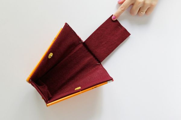 Logo após, para finalizar a sua peça, basta dobrar as laterais para dentro e pregar o fecho de pressão. E está pronto!