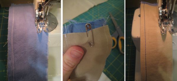Logo após, posicione as partes maiores da bolsa com os lados diretos dos tecidos para fora, e costure o viés ao redor de toda a parte.