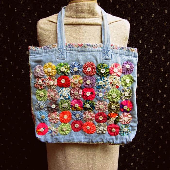 Aproveite seus fuxicos e fixe-os em sua bolsa jeans.