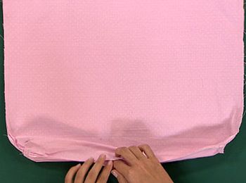 Em seguida, corte dois retângulos da lona vermelha e dois retângulos no tricoline, todos com tamanho medindo 45 cm x 35 cm.