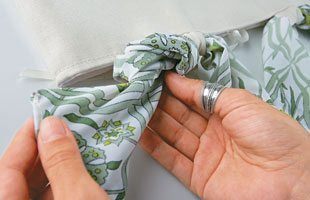 Hora de passe as alças pelos passadores. Para prender, utilize um nó. Reserve uma ponta de cerca de 20 cm.