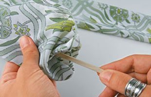 Corte duas tiras de seda com a medida de 120 cm de altura x 20 cm de largura. Faça a costura das laterais e também em uma das pontas pelo avesso. Agora desvire com a ajuda do palito.