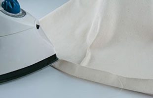 Dobre 1 cm da boca da bolsa para dentro e depois passe o ferro para marcar. Faça novamente o procedimento com o forro.