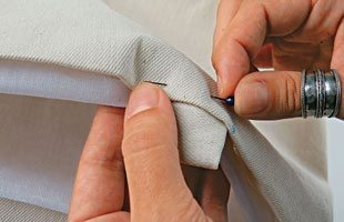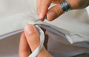 Primeiro risque o molde duas vezes na lona e outras duas vezes no forro. Una, juntando o direito contra o direito e depois costure a lateral e a parte de baixo na máquina.