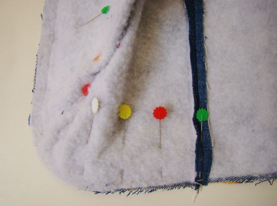 Costure o forro da mesma forma que costurou o jeans, porém sem o viés.  Dê piques por toda a extensão para acomodar a costura.