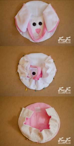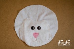 Pregue os olhos e borde a boquinha e o focinho na carinha e costure a carinha na cabeça.