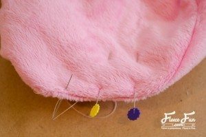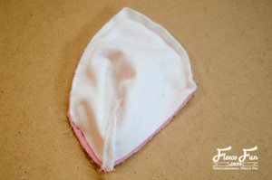 Costure as orelhas na carinha e a tira lateral. Faça o mesmo com o forro.