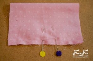 Continuando com a confecção da bolsa infantil de ursinho passo a passo, agora você deve costure velcro no forro.