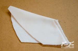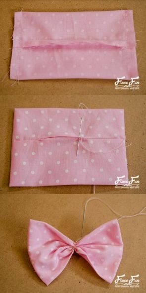 Costure um retângulo dobrado ao meio, com o lado do avesso para fora, mas com uma abertura, para fazer o laço.