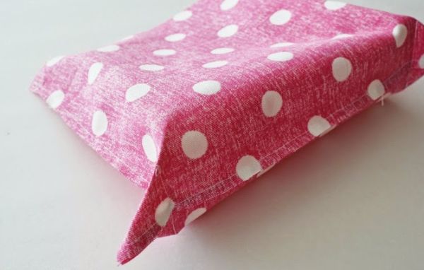 Agora, você deve fazer a bolsa ficar com uma base quadrada, para isso basta “amassar” os cantos para criar uma ponta e costurar em linha reta. Isso fará com que a base da bolsa fique como uma caixa, para que ela possa ficar em pé sozinha.