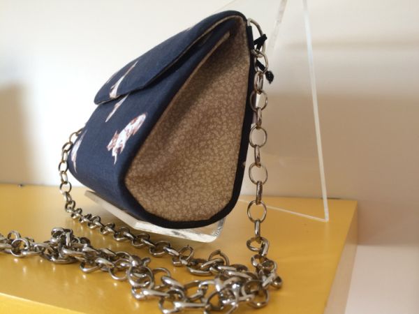 Para fazer a bolsa do momento, a bolsa em formato de caixa de leite, escolha uma caixa de leite que possua a parte superior em formato triangular. Encape a caixa de leite com o tecido de sua preferência ou encape com couro sintético fino, para ficar mais sofisticado. Fixe ilhós nas laterais ou na parte superior e passe uma alça de corrente pelos dois ilhoses, para ficar mais firme. Fixe velcro para fechar. E decore como quiser.