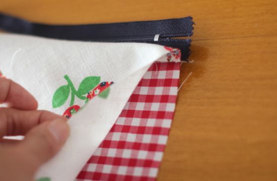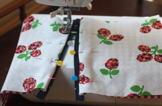 Agora, acerte os tecidos e faça o mesmo do outro lado do zíper.