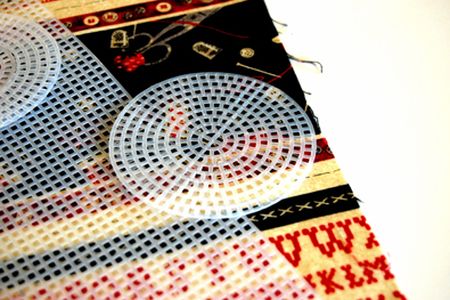 Comece cortando dois círculos na tela de plástico, com o tamanho que você quiser para fazer a sua bolsinha.