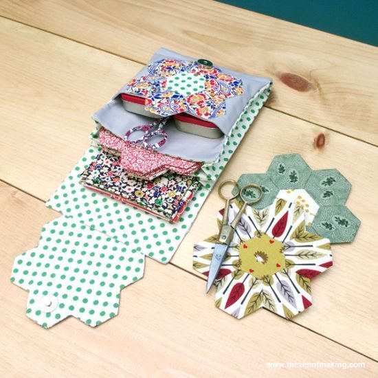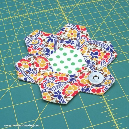 Créditos:http://www.thezenofmaking.com/2013/08/tutorial-english-paper-piecing-travel-kit-hexies-part-3.html.