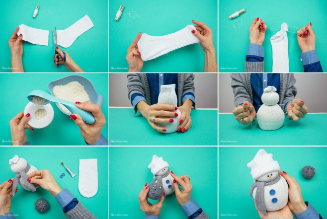 Para fazer boneco de neve de meia e arroz você irá precisar de: