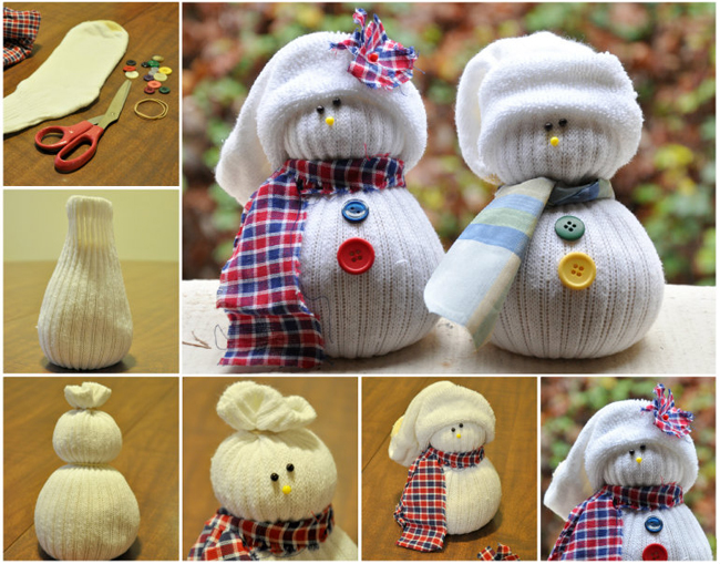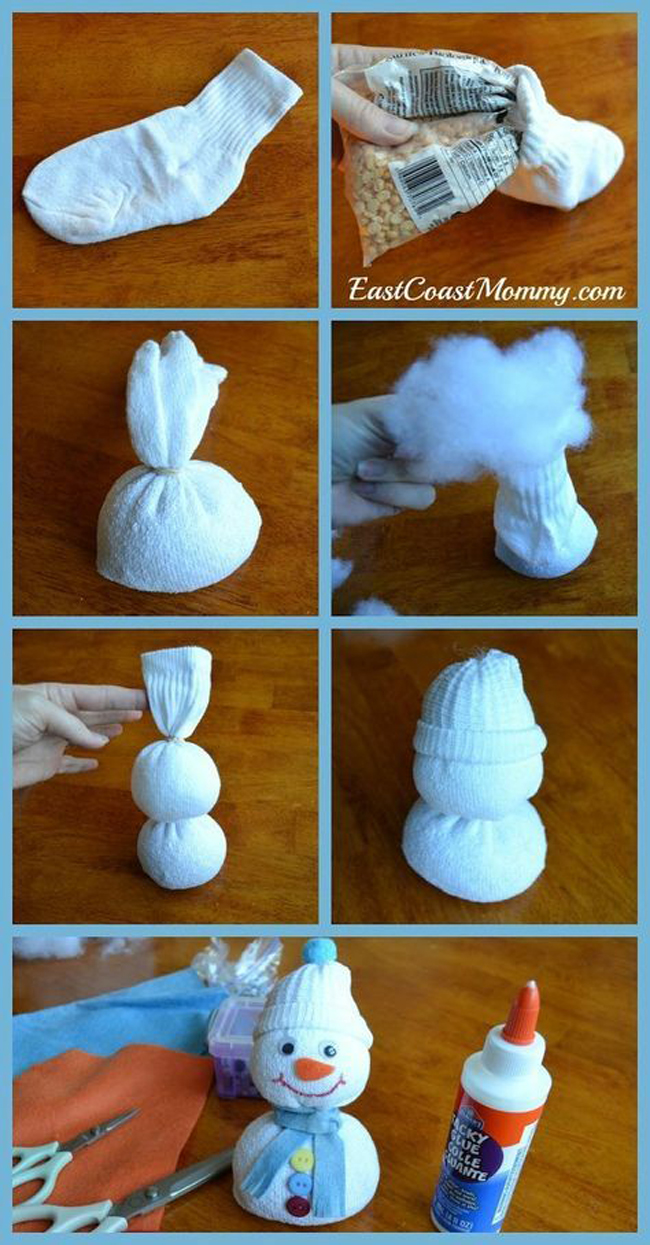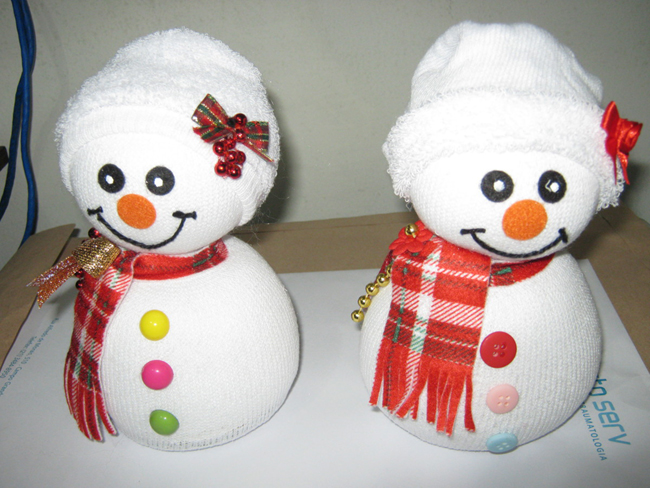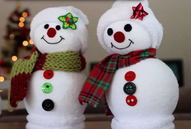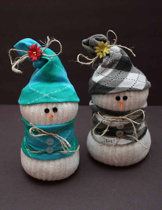 Se você está buscando um enfeite natalino fofo e muito interessante pode investir no boneco de neve de meia, que também é barato, caso use meias quer já possua em casa.