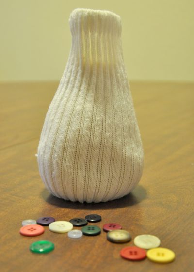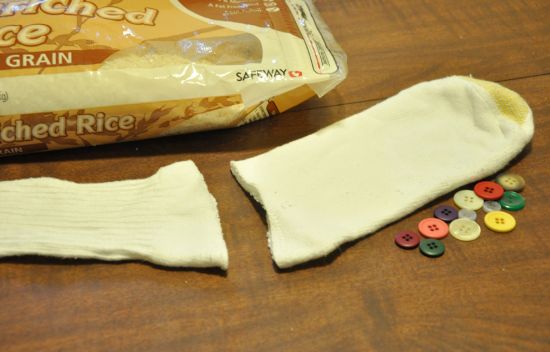Agora, encha a meia com arroz. Mas certifique-se de encher, e formar uma base redonda condizente com o “corpo” do boneco de neve.