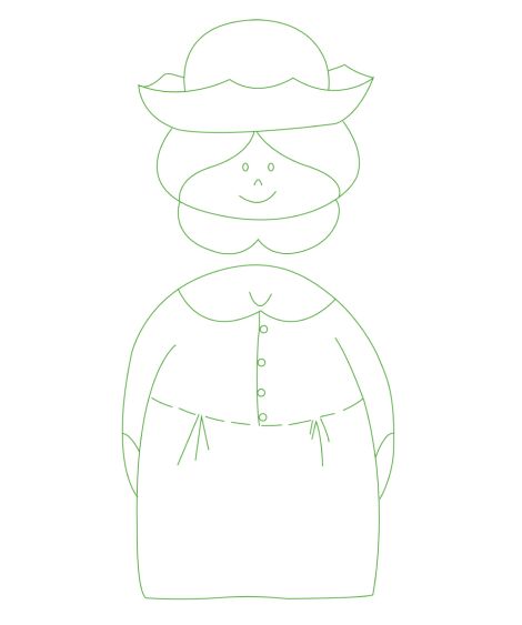 Para fazer estes simpáticos bonecos você irá precisar de: recorte de MDF com formato de corpo de menina; suporte retangular de MDF (15 x 3 cm); folha de EVA branca; tinta PVA fosca nas cores amarelo-pele, marrom, cerâmica, branca, amarelo-cádmio, laranja, preta, verde-musgo, verde-esmeralda e vermelho-fogo; pincéis chato nº 4 e nº 16, angular nº 14, liner nº 2 e de cerdas nº 8; lápis preto; tesoura; lixa fina nº 220; cola quente; verniz em spray; e molde (imagem a seguir).