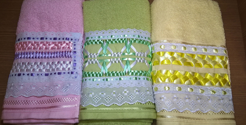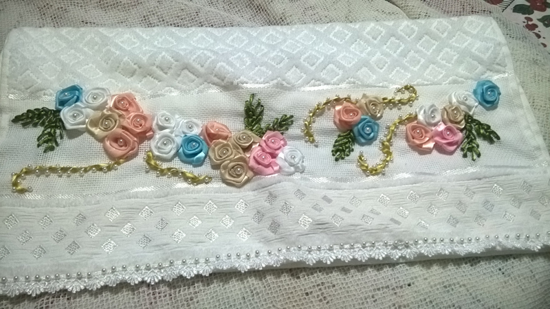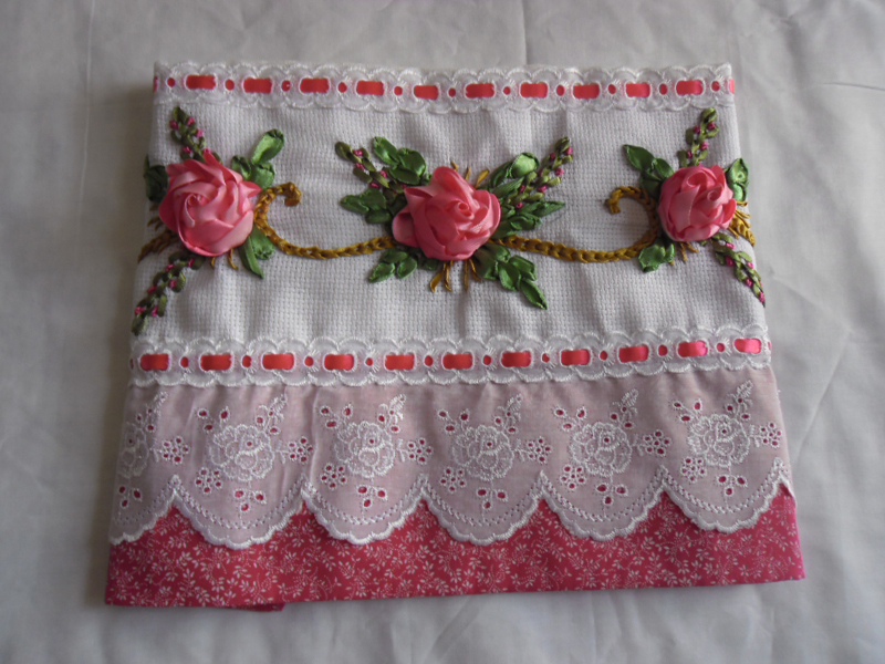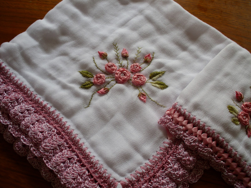 O bordado de fita em toalha de banho é o mais conhecido, porém você pode bordar com fitas as fraldas dos bebês, as mantas dos bebês, os panos de pratos, as peças de cozinha, as suas almofadas, as suas bolsas e até as suas roupas, fazendo rosas bordadas de fita para decorar uma camiseta, por exemplo.