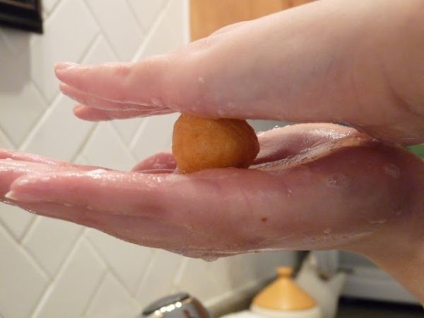 Em seguida, modele com as mãos uma bola, mas não precisa ficar certinha, basta apenas ter um contorno de esfera.