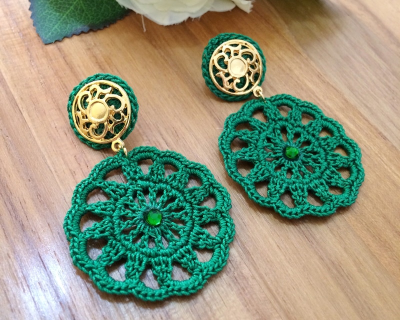 Se você gosta de folhas de crochê pode fazer um brinco com este elemento. E além de folhas você pode usar também flores de crochê em seu brinco finalizando com esse detalhe que faz toda diferença.