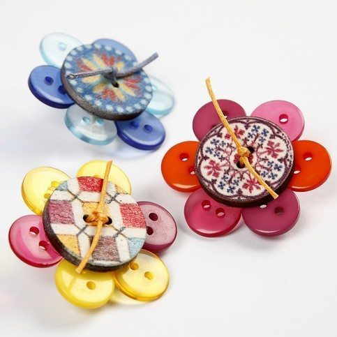 - Botões com dois furos com os modelos, os estilos, as estampas, os tamanhos ou as cores de sua preferência;