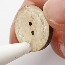 Em seguida, vire a peça para que o lado do avesso fique para cima e cole um botão na parte central.