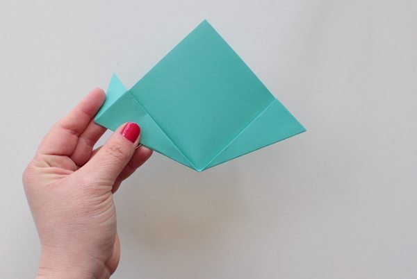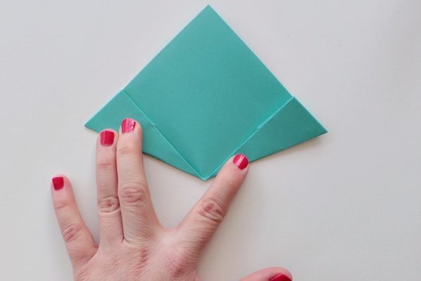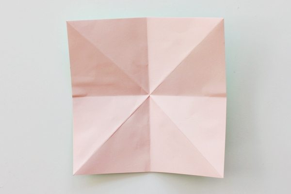Abra o papel e dobre as pontas para dentro.