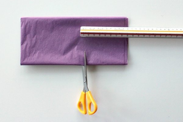 Para fazer a flor de papel de seda, dobre a folha em várias partes e corte uma tira com média de tamanho de 10 cm.