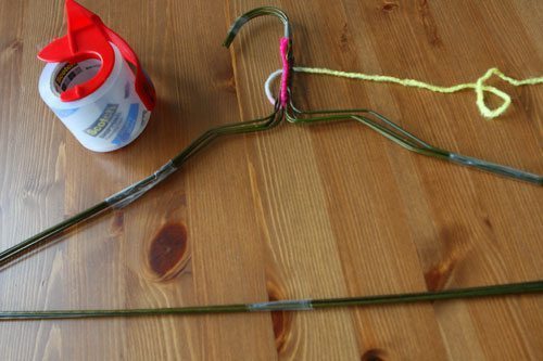 Logo após, enrole a linha escolhida ao redor do cabide.