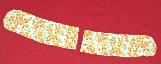 Logo após, corte o tecido em formato de cabide ao meio e costure ao redor de cada parte, mas deixando aberta a parte do meio (que foi cortada para dividir). Desvire as peças.