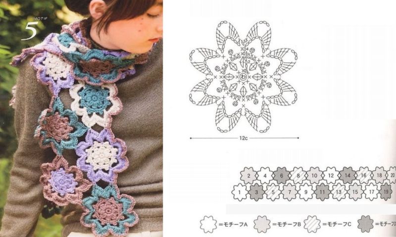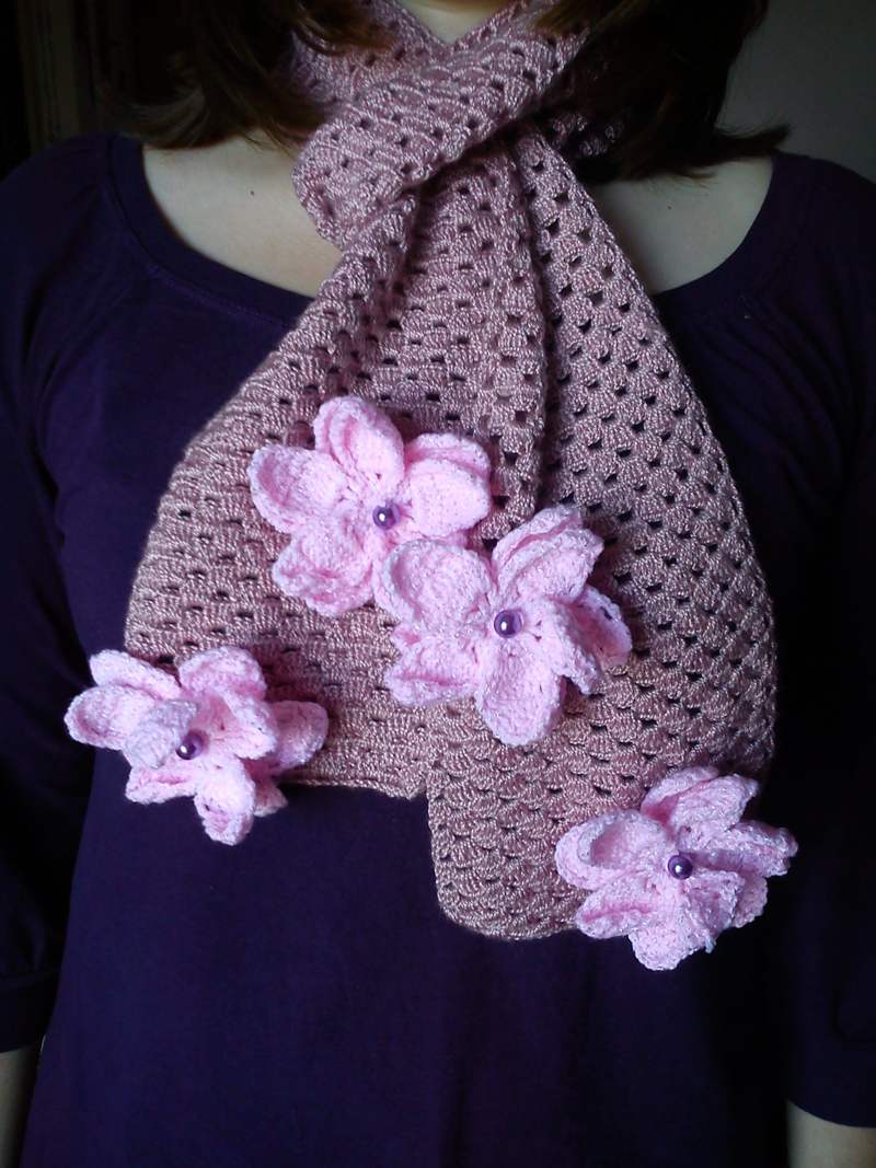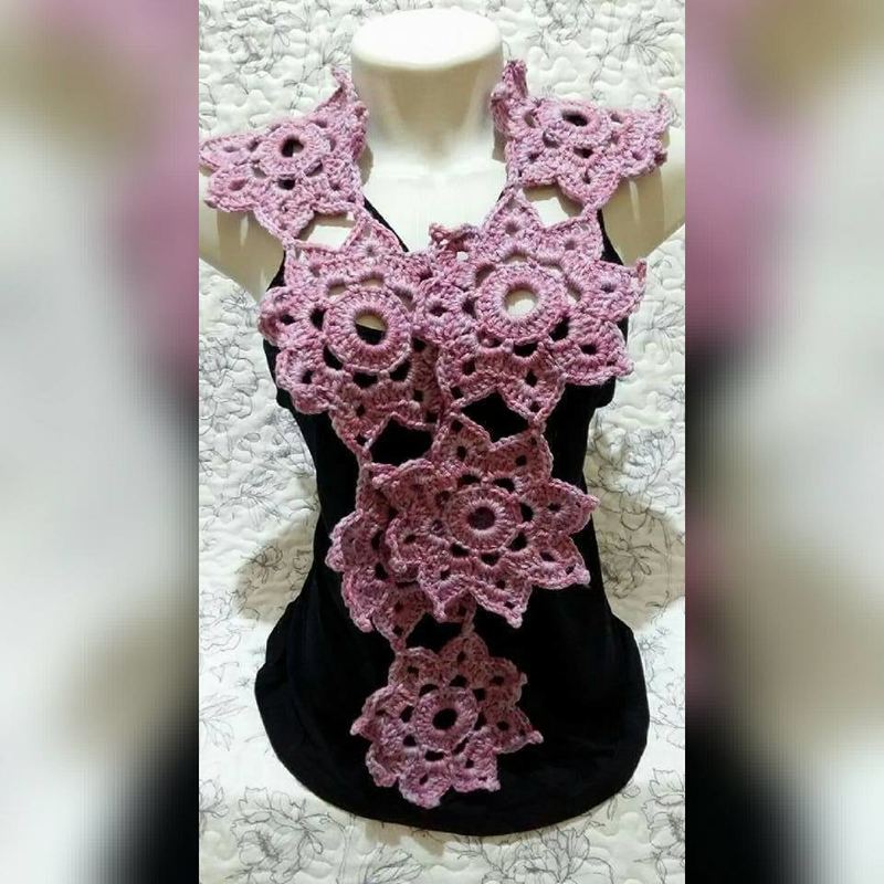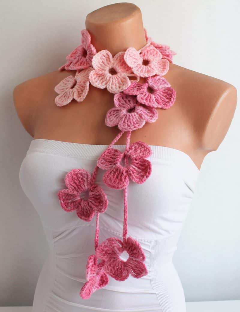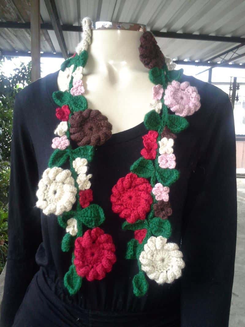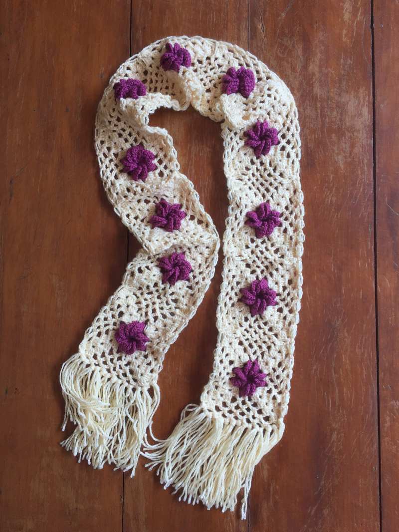 As flores feitas em crochê deixam o seu cachecol com um nível de beleza que ultrapassa o imaginável.