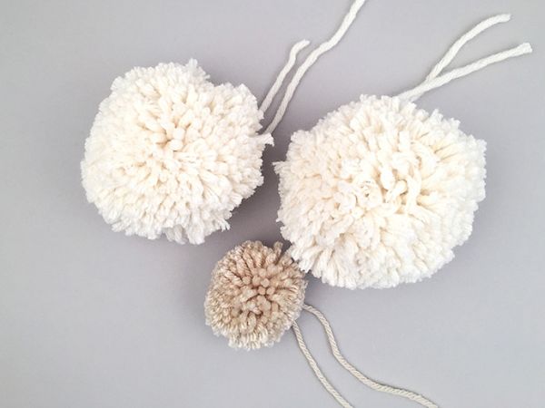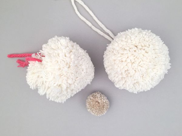 Comece fazendo ou separando dois pompons maiores e um pompom menor.
