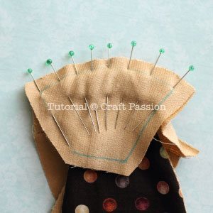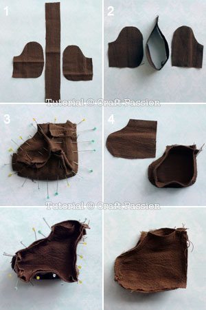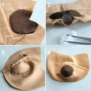 Logo após, costure a carinha fazendo pregas.