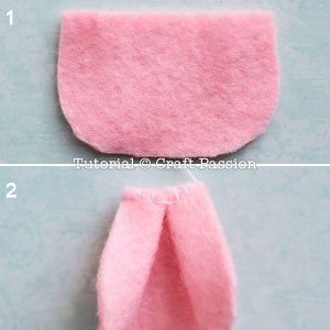 Agora, costure o detalhe da cabeça nas orelhas.