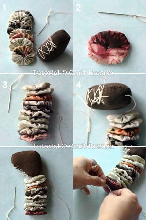 Logo após, costure fuxicos na cabeça, para ser o corpo.