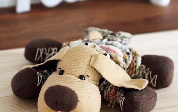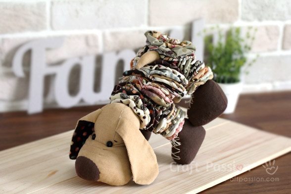 Em seguida, para finalizar a sua peça, costure o rabinho em seu cachorro. E está pronto!