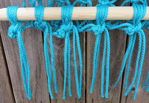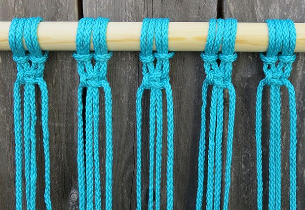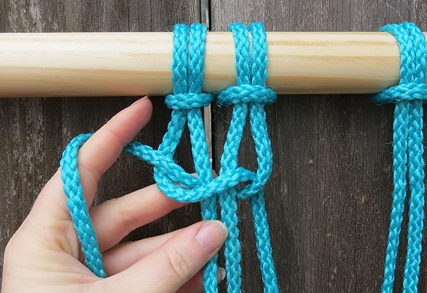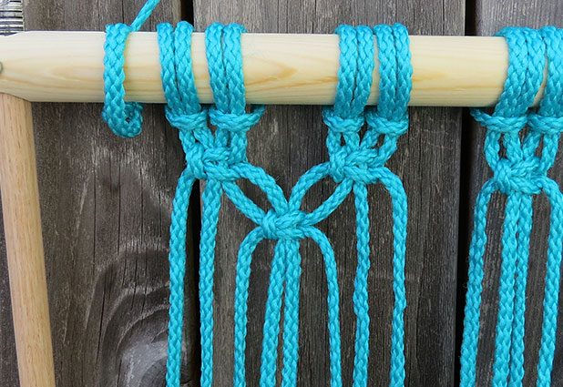 Faça o mesmo “nó” de macramê, porém intercalando os grupos de fios.