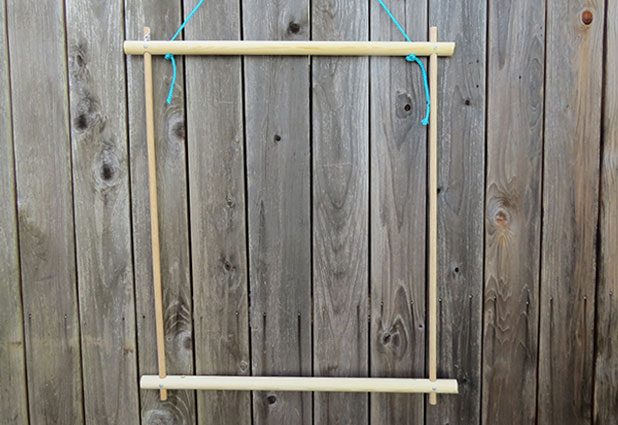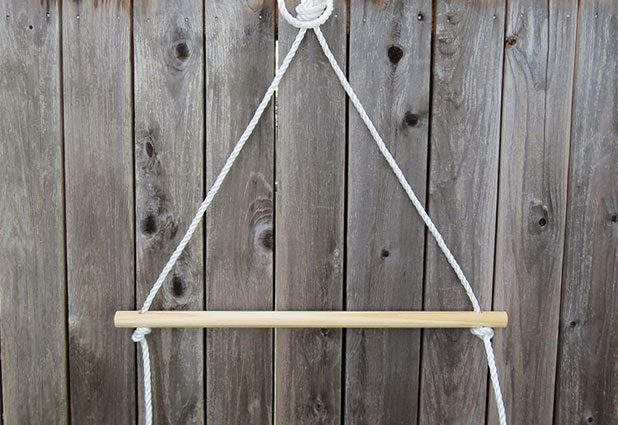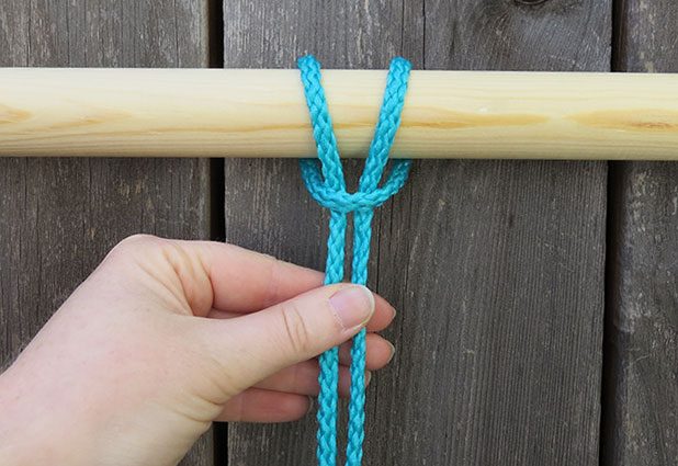 Passe o cordão que irá pendurar a sua cadeira por uma vareta e faça vários nós, com todos bem firmes.