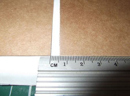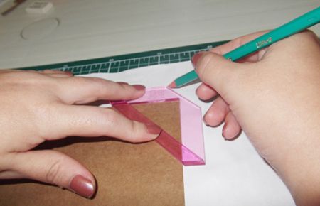 Com os pedaços de papel Kraft já colados, coloque o fio de cabelo sobre o papel Kraft e marque os cantos. Faça isso nos quatro cantos. E corte com a tesoura onde está a marca feita com o fio de cabelo.